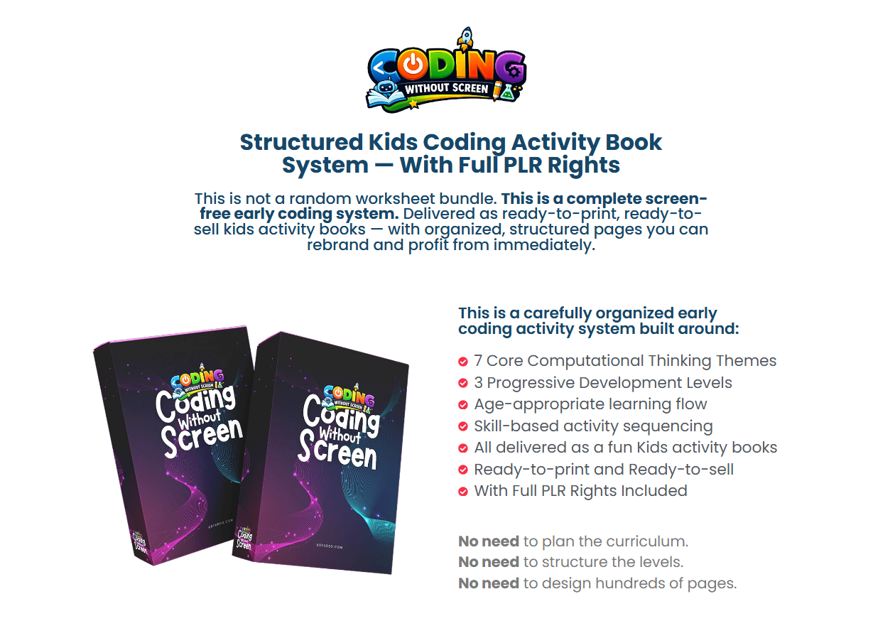 Build, Brand & Sell Your Own Structured “Coding Without Screen” Activity Book Series — With Full PLR Rights