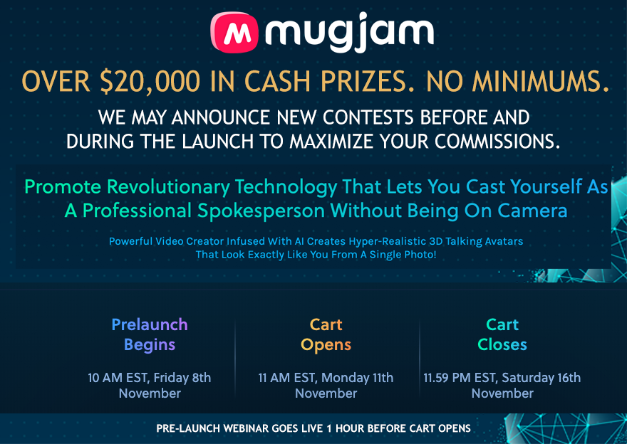 Join us to promote this Never Seen Before Technology that creates Talking Mugjams from Any Photo. The product has been in development for 13+ Months. We would really appreciate your support on this massive release with $20,000 in JV prizes with NO MINIMUMs. Contact us for anything you need to crush this promo.