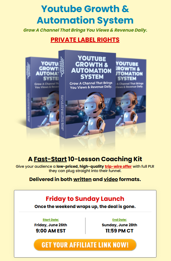 | Product: | [PLR Firesale] Youtube Growth & Automation System |