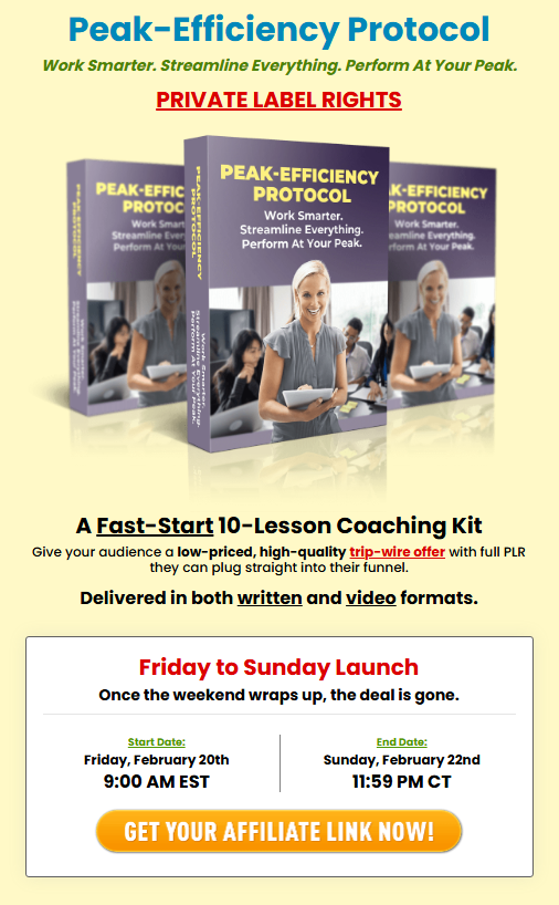 | Product: | [PLR Firesale] Peak-Efficiency Protocol |